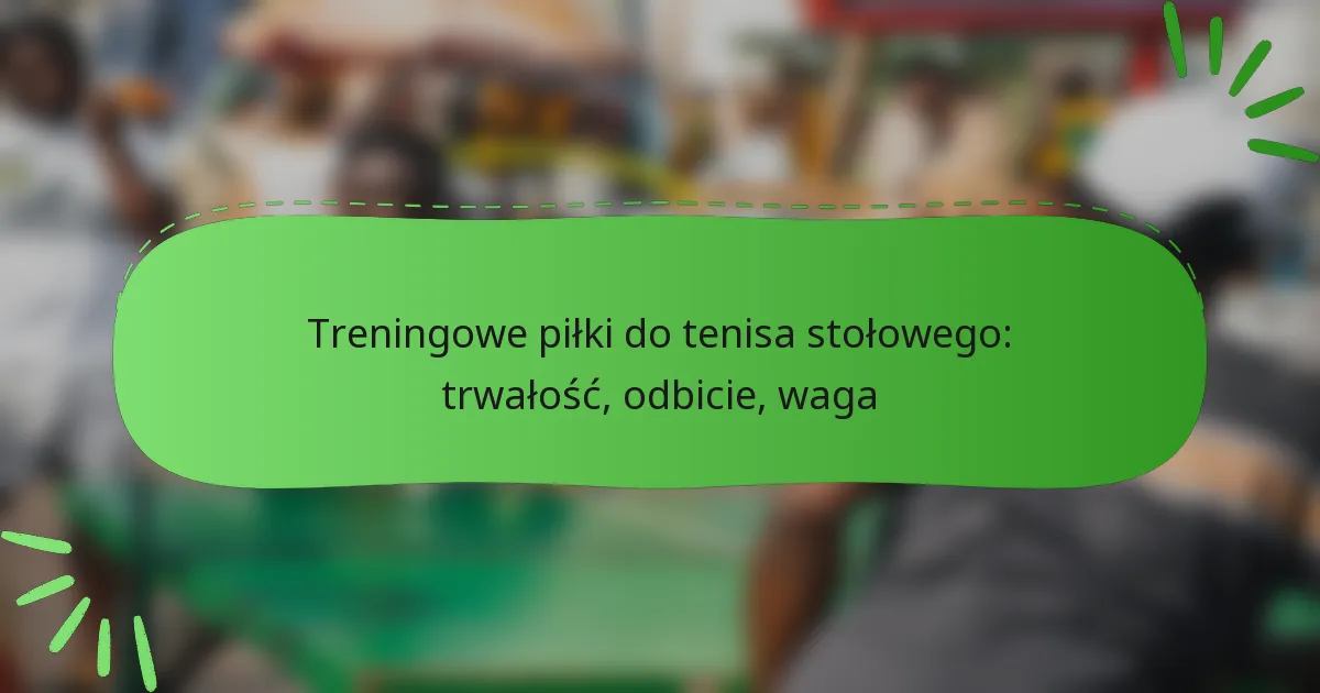 Piłki do treningu w tenisie stołowym są zaprojektowane w celu poprawy umiejętności graczy na różnych poziomach, od początkujących po ekspertów. Kluczowe cechy obejmują skład materiałowy, twardość, wagę, właściwości odbicia i zdolność do rotacji, które znacząco wpływają na grę i wydajność.